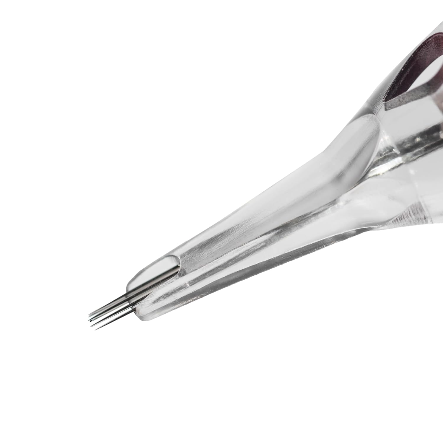 - CONFIGURATION: 7 needles stacked in two rows with a curved profile, depositing 7 pixels of ink at a time. Diameter: 0.25 mm. Taper: Long - 6 mm. 10 needles per pack