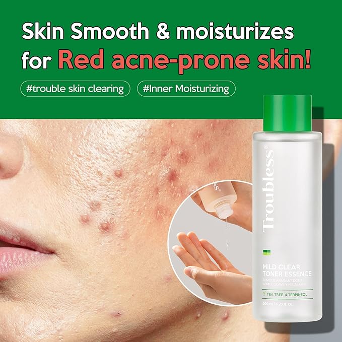 Troubless Mild Clear Toner Essence - Tea Tree Facial Toner for All Skin Types | Hydrating Skin Toner, Daily Skin Care (6.76 fl oz)