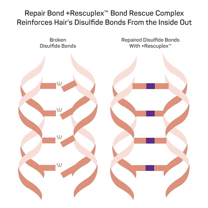 - Stay Strong: The Repair Bond system is formulated with Rescuplex, a complex developed to rebuild and maintain hair’s damaged bonds, including disulfide bonds. Designed with added ingredients like rice bran oil, rosemary oil, hydrolyzed quinoa and vitamin C, the Repair Bond +Rescuplex system is proven to result in hair that feels 111% stronger, 140% smoother and with 129% more shine.