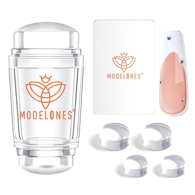 - French Nail Stamper: Create stylish and funny nail art with Modelones french nail stamper kit; it contains 1 jelly stamper, 1 scraper and 4 replacement heads; the stamper is clear and easy to use, picking up patterns quickly and accurately; suitable for nail professionals and beginners; you can use it as a nail stamp, a french manicure kit, or a nail french tip tool