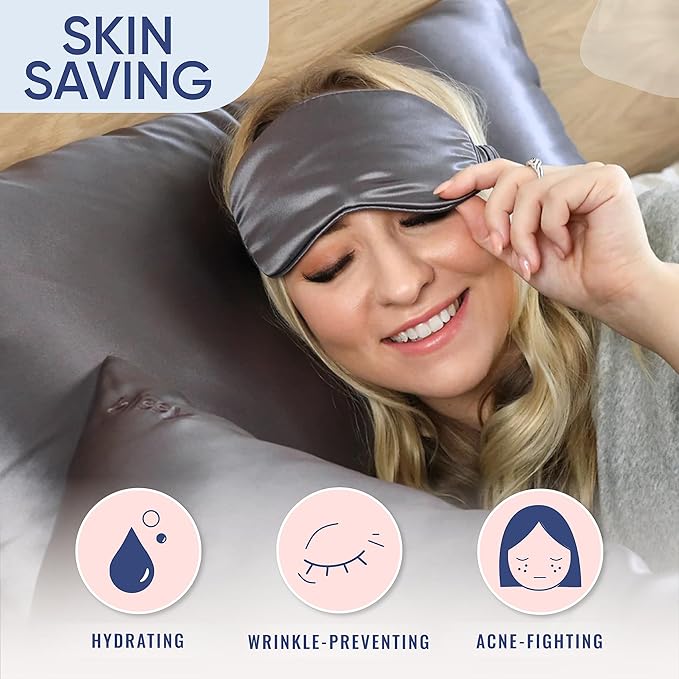 Blissy Silk Pillowcase - 100% Pure Mulberry Silk - 22 Momme 6A High-Grade Fibers - Silk Pillow Cover for Hair & Skin - Regular, Queen & King (Gray, Queen)