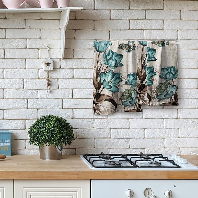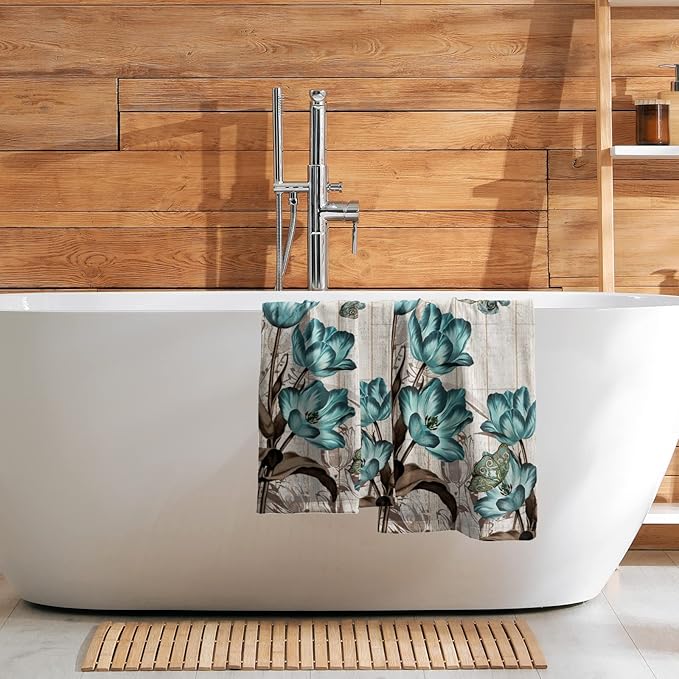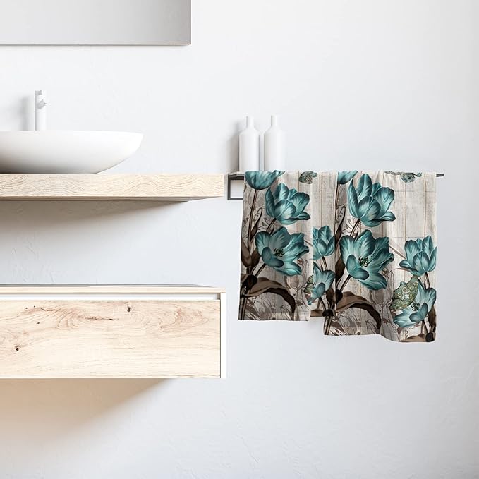 - 【2 Piece Towel Set】The size of the teal tulip hand towel is 28 X 14.5 inches. This set includes 2 hand towels. With bright colors and exquisite patterns, it is an excellent decorative towel for the bathroom.