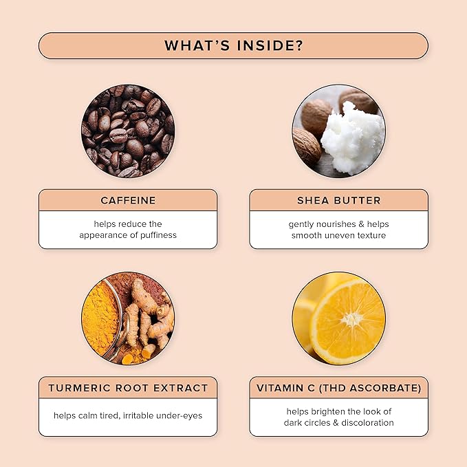 - All-Natural Goodness - Pamper your skin with the finest natural ingredients in our eye bag cream. From kombucha and vitamin C to caffeine and turmeric root extract, our eye depuffer cream is soothing and nourishing to promote a calmer, smoother complexion.