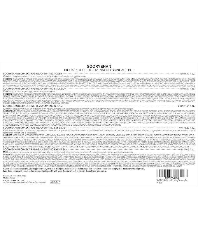 Sooryehan Bichaek True-Rejuvenating Skincare Set (206 ml/6.97 fl oz) - Radiant and Firm Skin, Skin Elasticity by LG Beauty. Korean Panax Ginseng, Korean Medicine Extracts