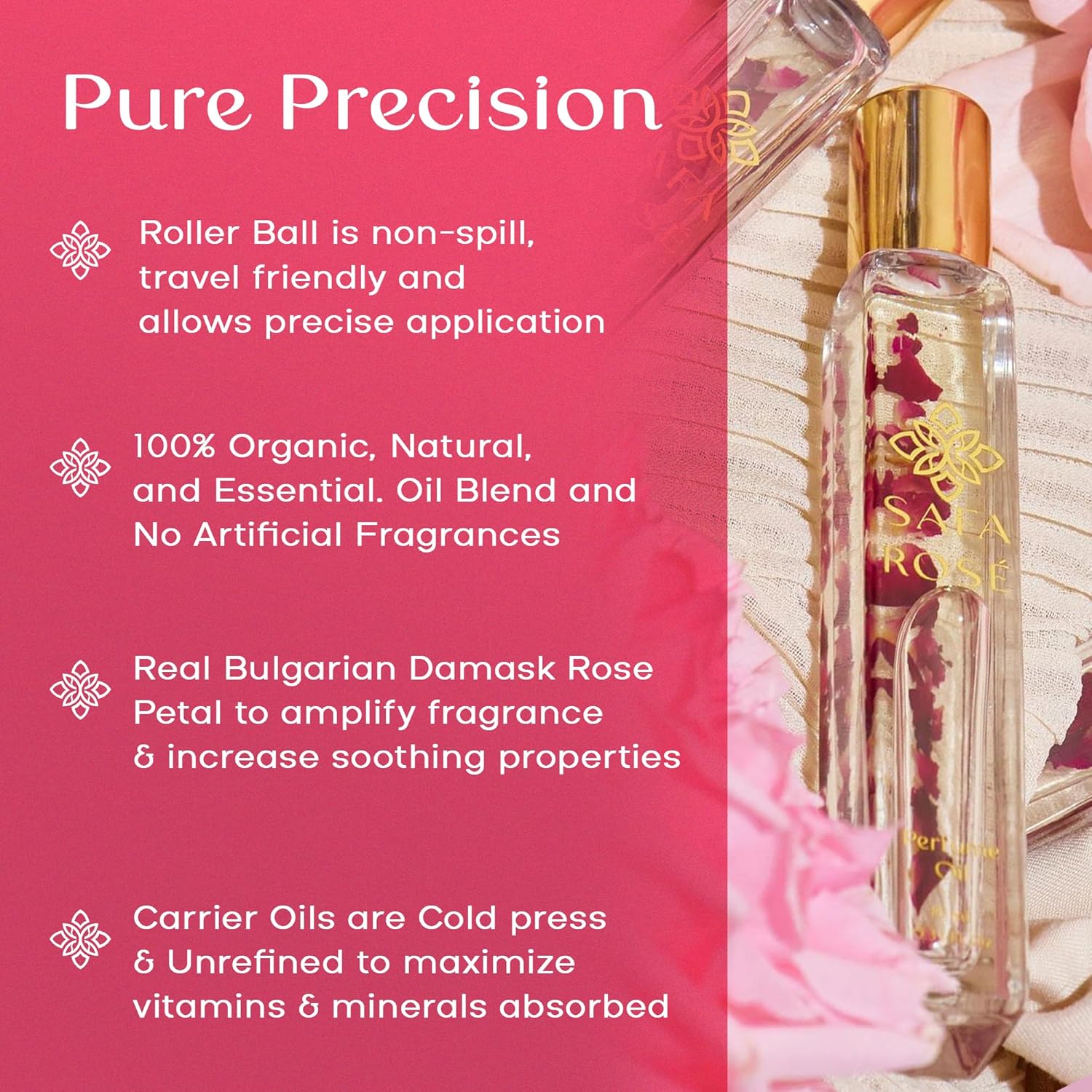 SAFA Rosé Organic Rose Oil Perfume Roller | Bulgarian Damask & Indian Rose Petals | 10 mL Long Lasting Perfume Oil for Women & Men | Non-Toxic, Alcohol-Free & Travel Friendly