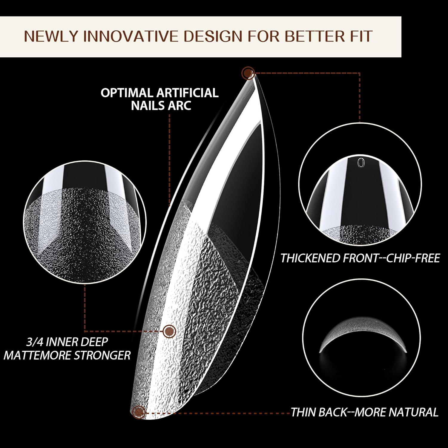 - 【Updated 3/4 Inner Deep Matte】 Our extra short almond fake nails have been upgraded with 3/4 inner deep matte texture, providing stronger adhesion to your natural nails. The almond nail tips are pre-shaped, saving your time and effort. No worry that your nails will become thinner and uglier due to polishing, better care for your nails