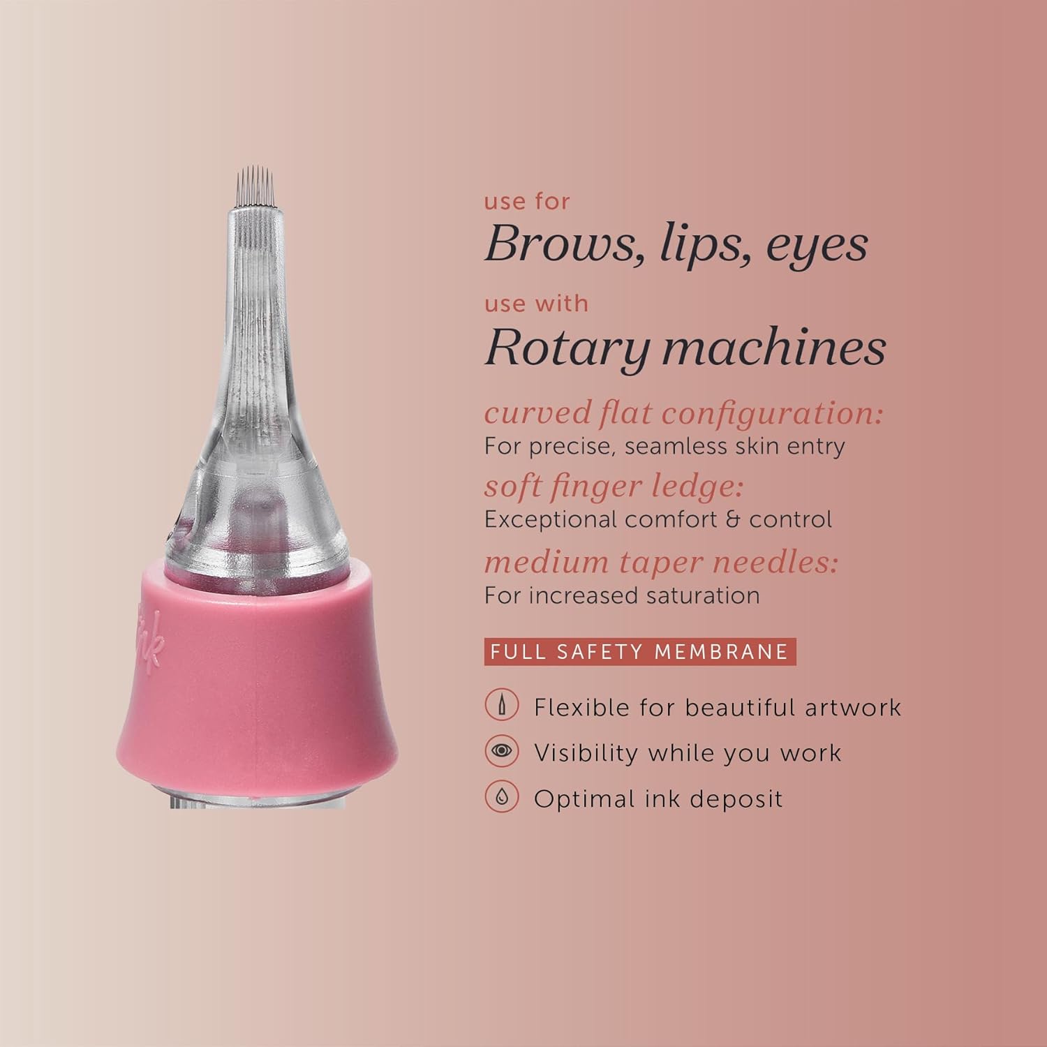 Tina Davies PIXL Cartridge, 8U Curved Flat Medium Taper Cartridge for Linework, Hairstrokes, Eyebrows, Lips, and Eyeliners .30mm 8U CF MT, Pack of 10