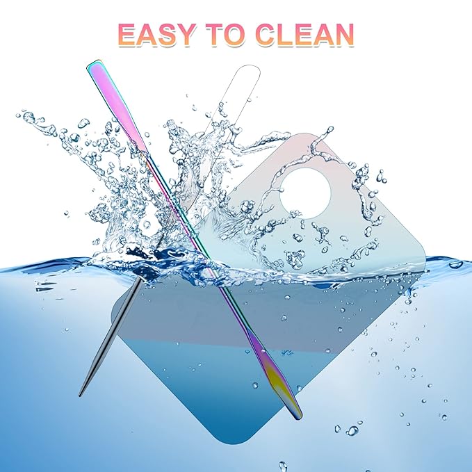 - Wide Application: our makeup mixing palette is not only perfect for blending foundation, creams, eyeshadow, lipstick, nail polish, and other cosmetics but also good for art pigments color mixing. Slanted round head design makeup spatula cares for your skin and provide you a fast and effective makeup application