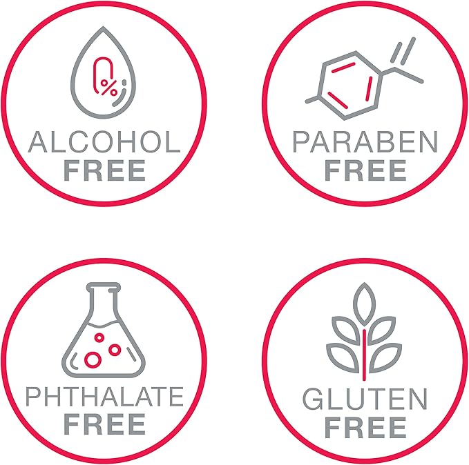 - ALCOHOL-FREE, Paraben-Free, Phthalate-Free and Gluten-Free.