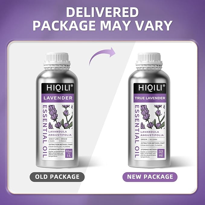 HIQILI 32 Fl Oz Lavender Essential Oil Pure, for Aromatherapy Diffuser, Hair, Includes Premium Quality Glass Dropper-32 Ounces