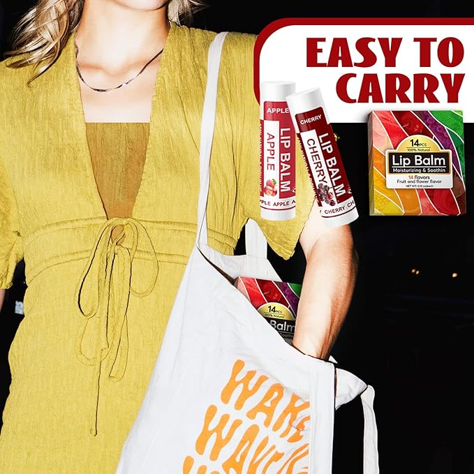 Yopela 14 Pack Natural Lip Balm in Bulk with Vitamin E and Coconut Oil - Moisturizing, Soothing, and Repairing Dry and Chapped Lips Valentine's Gift - 14 Flavors - Non-GMO - With Greeting Card
