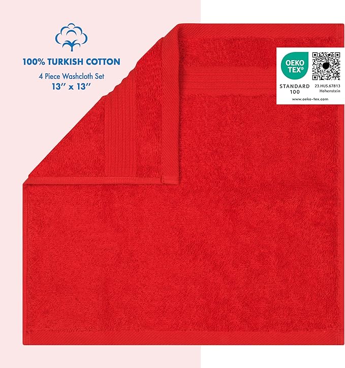 Cotton Paradise 100% Cotton Turkish Washcloth Set for Bathroom, 4 Piece Soft Absorbent Small Hand Face Towels Wash Rags, Red