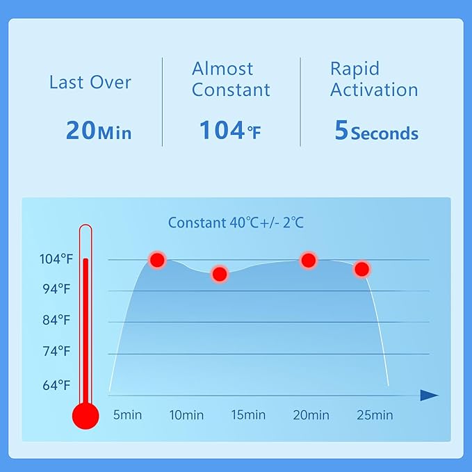 - Patented & Stable -- The eye soother masks gain patented ultra thin self-heating cell, last for about 25minutes with constant temperature of 40β(104F), as well as gentle but dense steam. Warm and wet vapor helps better rejuvenate tired eyes, improve micro-circulation around your eyes, and promote absorption of eye creams, allowing you to enjoy face spa anytime and anywhere