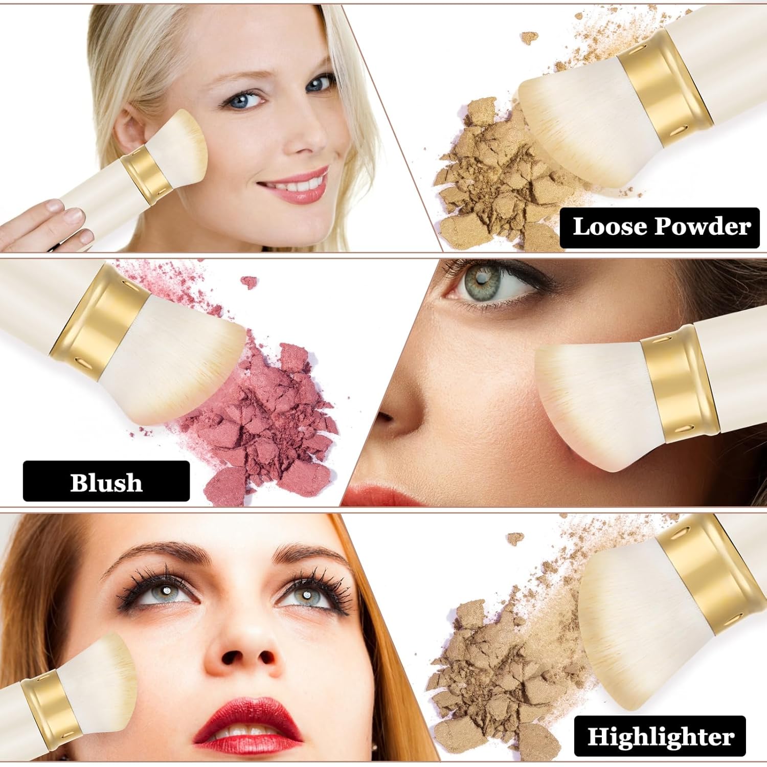 - 【Stylish & Easy to Clean】 The travel powder blush brush comes with recycled aluminum, excellent and more beautiful, increase the longevity of your face brush. Clean regularly with makeup brushes shampoo to lengthen brush health and prevent excessive shedding.