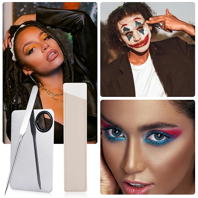 - Premium material: Both the palette and the spatula are made of quality stainless steel material, which is durable, easy to clean, and the color shows clearly; the makeup spatula has no protruding burrs and will not scratch your skin. Can serve you for a long time.