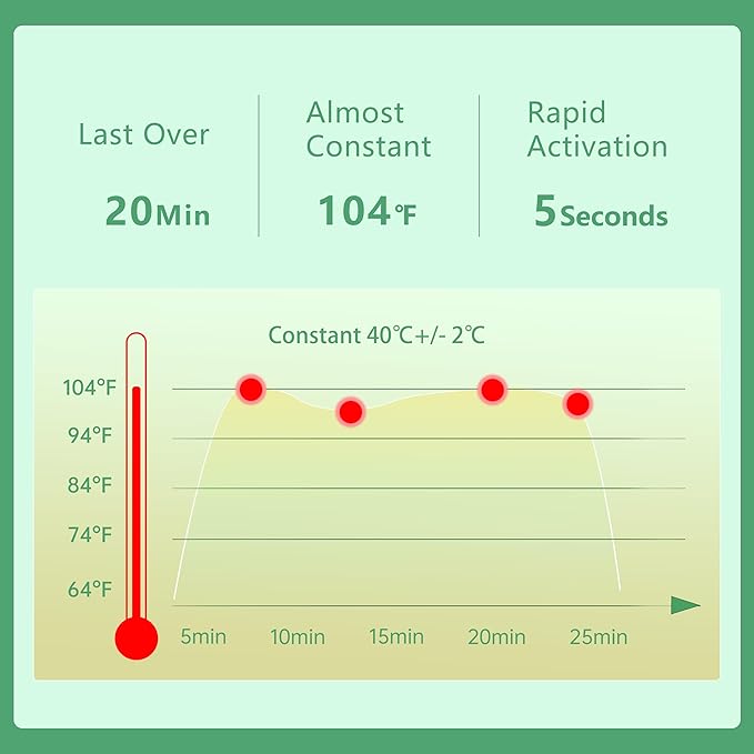 - Patented & Stable -- The eye soother masks gain patented ultra thin self-heating cell, last for about 25minutes with constant temperature of 40β(104F), as well as gentle but dense steam. Warm and wet vapor helps better rejuvenate tired eyes, improve micro-circulation around your eyes, and promote absorption of eye creams, allowing you to enjoy face spa anytime and anywhere