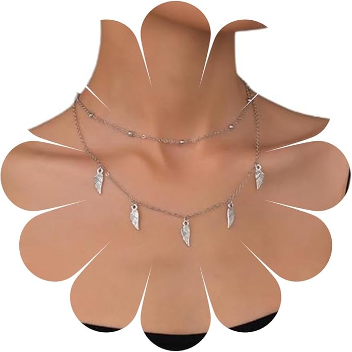 Vintage Layered Wing Dangle Necklace Angel Wing Pendant Necklace Tiny Wing Choker Necklace Silver Angel Wing Necklace Jewelry for Women