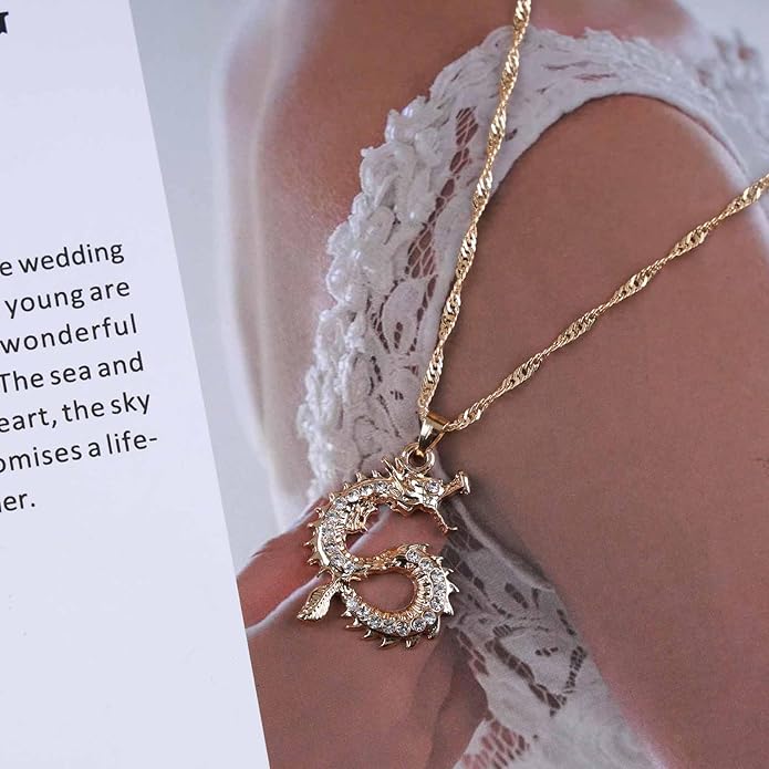 Vintage Dragon Pendant Necklace Punk Dragon Necklace Ancient Dragon Choker Necklace Gold Flying Dragon Necklace Jewelry for Women