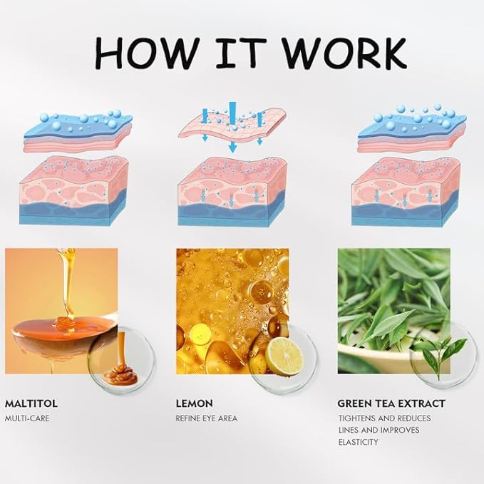 - Hydration and Nourishment: The eye patches are infused with hydrating and nourishing ingredients that help to moisturize the delicate skin under your eyes, reducing dryness and improving overall skin texture.