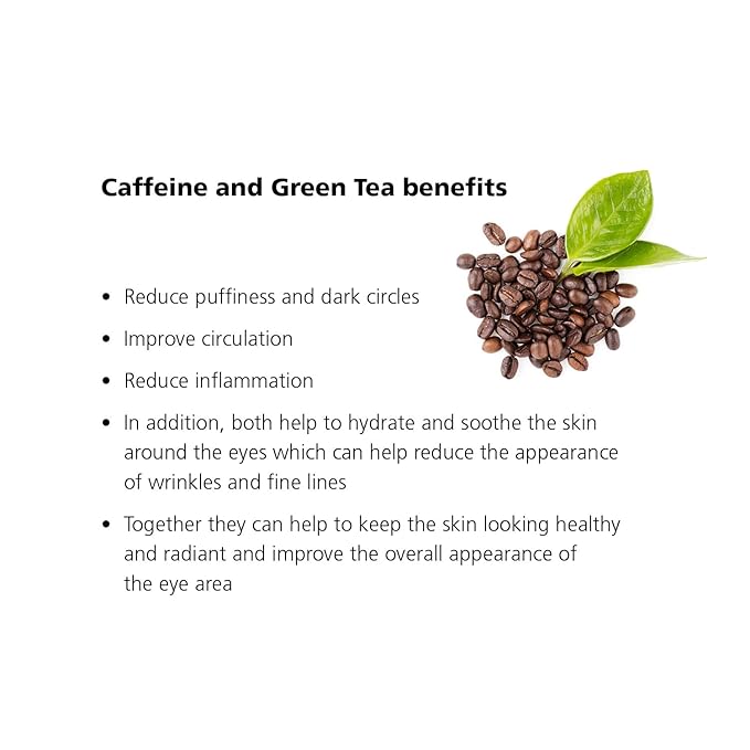 - Caffeine can help reduce puffiness and dark circles under the eyes; it can also reduce signs of premature aging such as the appearance of fine lines and wrinkles by increasing collagen production.