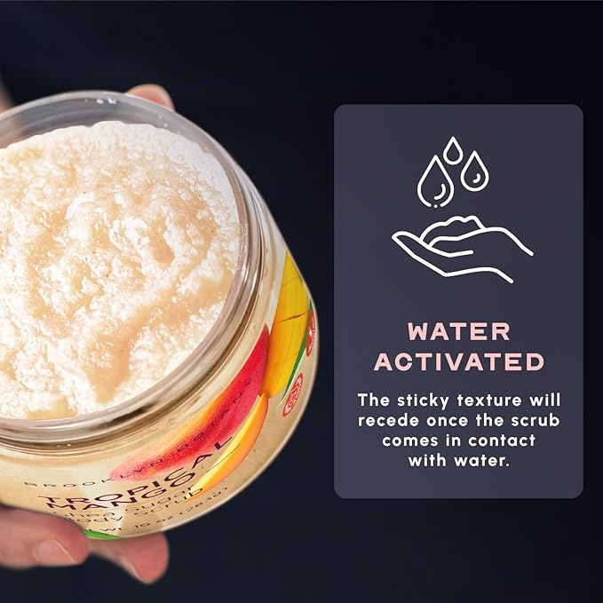 Brooklyn Botany Tropical Mango Shea Sugar Scrub for Body 10 oz – Deeply Hydrating and Gently Exfoliating Body Scrub for Women and Men - Made with Jojoba Beads