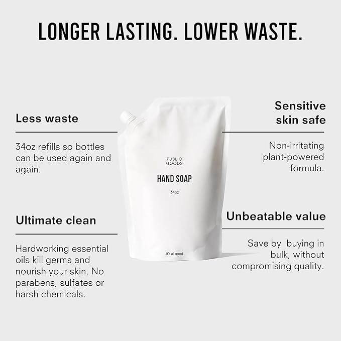 Public Goods Hand Soap | Cleansing Soap for Kitchen & Bathroom | Made with Natural Essential Oils | Paraben & Sulfate Free | Vegan Friendly | 34 Fl Oz Refill