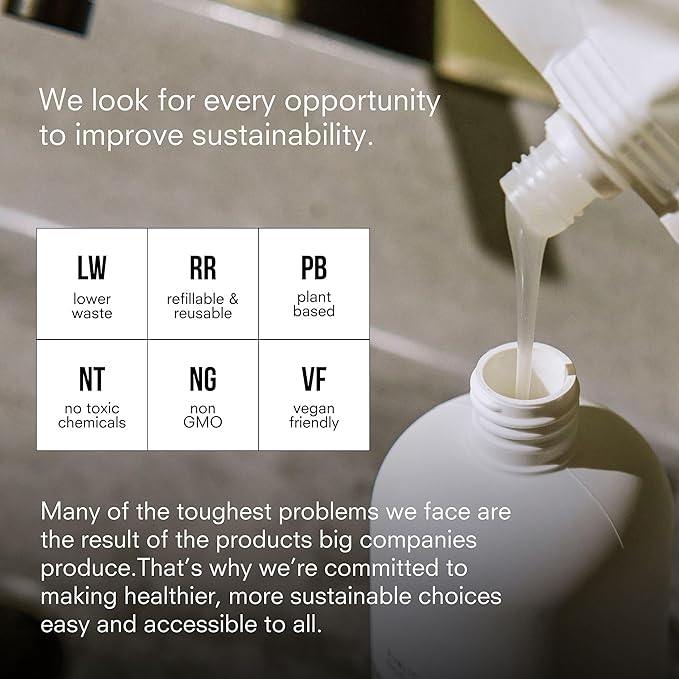 - Less Waste - Designed with sustainability in mind, our 34 ounce hand soap is ideal for refilling our 12 ounce bottle or one of your own.