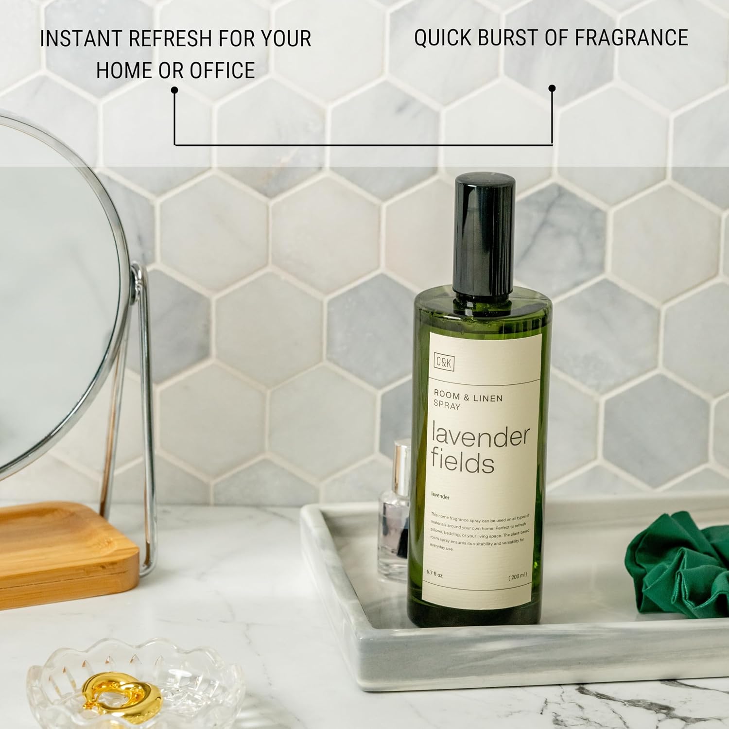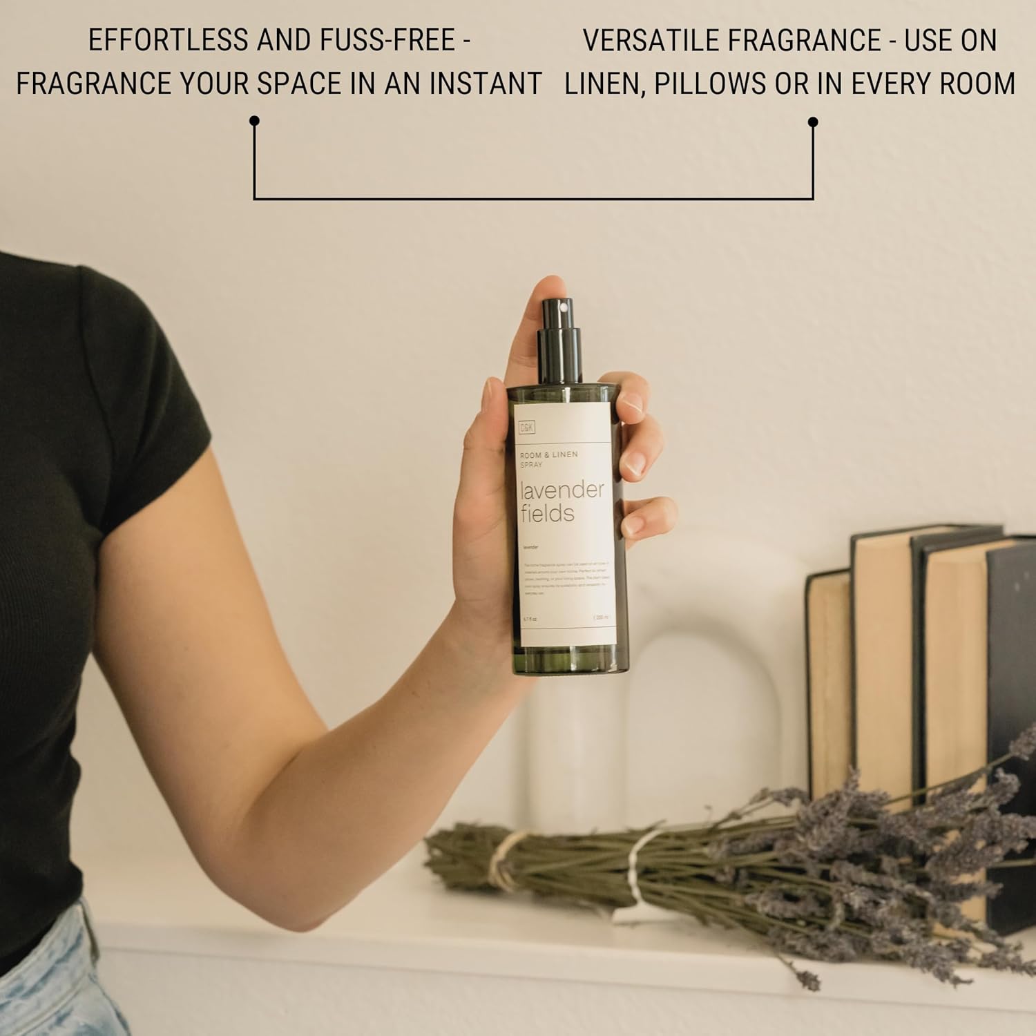 - ELEGANT DESIGN: You won’t need to hide this little gem, with its sleek and modern design. Our 6.7 oz room spray comes in a convenient bottle with a spray nozzle and provides you with easy application and long-lasting use.