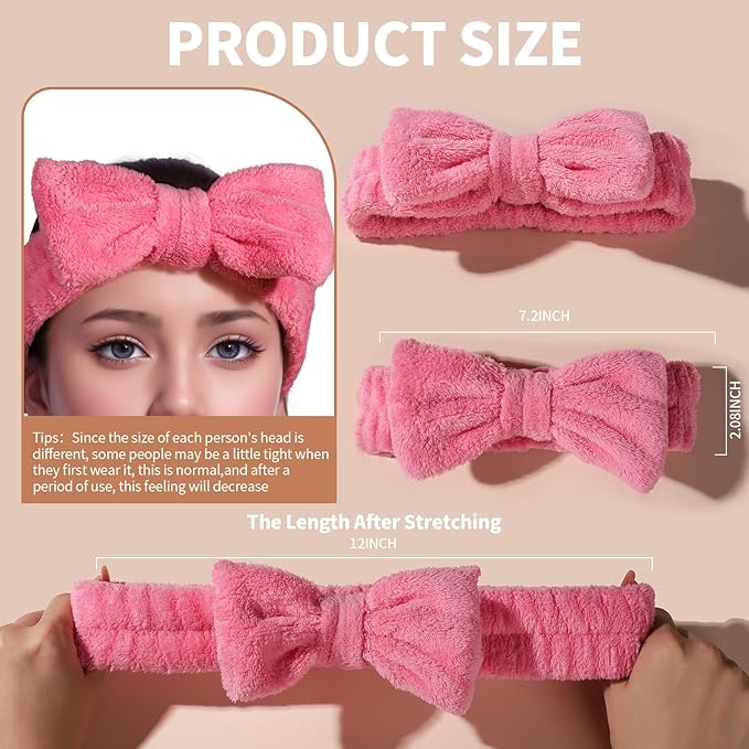 - Improved Design Makeup Headbands: There’s a lovely bow on the spa headband Made of soft coral velvet for no-skin irritation. well absorbent, Stays in place, leaves no marks, and easy to wash by hand or machine