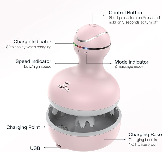 - Skin-Friendly and Waterproof - COMFIER Scalp Massager Hair Growth adopts IPX-7 waterproof material, so can use it to massage and clean scalp in the shower. In addition, the 4 massage heads are detachable for cleaning, so don't have to worry about the hygiene problems that may be caused by dandruff and scalp oil.