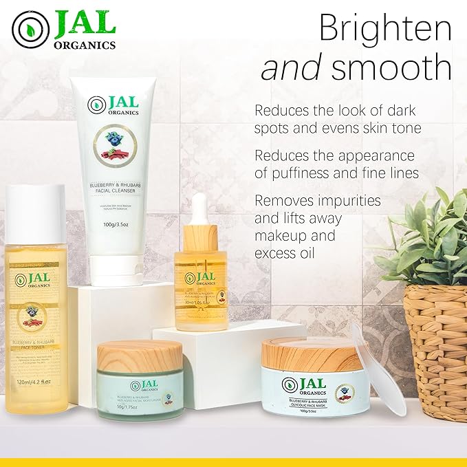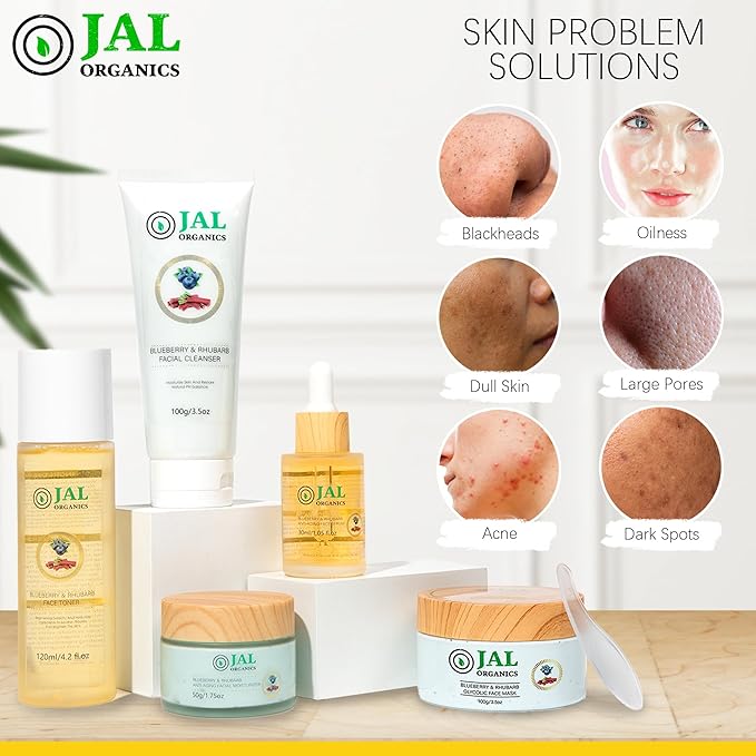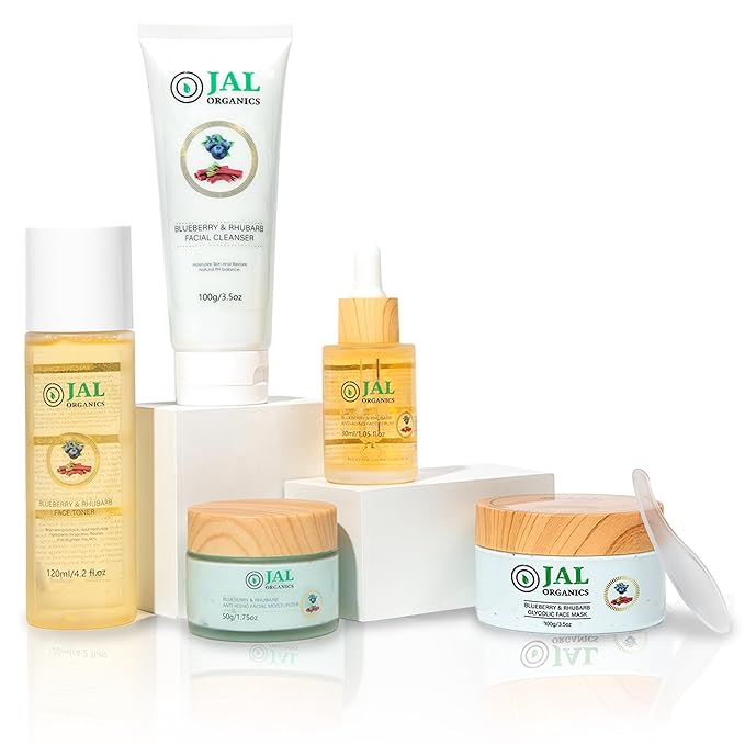 - 💰 Maximize Your Skincare Investment with A Smart Choice: Investing in the Jal Organics 5-piece Blueberry Rhubarb Skincare system is not just a purchase, but a smart move. Enjoy a comprehensive skincare routine without breaking the bank, thanks to our perfect blend of high-quality ingredients and multiple products. Witness the transformative effects of our premium skincare system as you indulge in cost-effective skincare luxury.