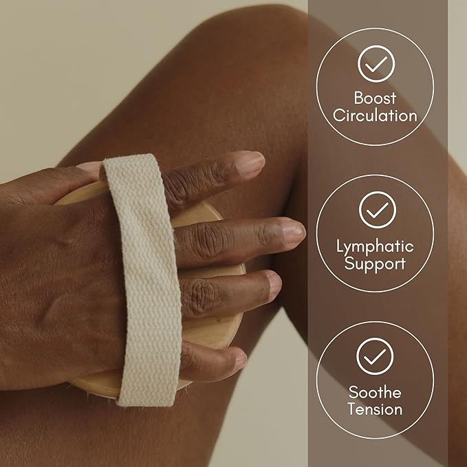 - πΏ Natural Glow: Crafted with natural bristles, our Body Brush stimulates blood circulation, encourages lymphatic flow, and helps your skin absorb your skincare products more effectively.