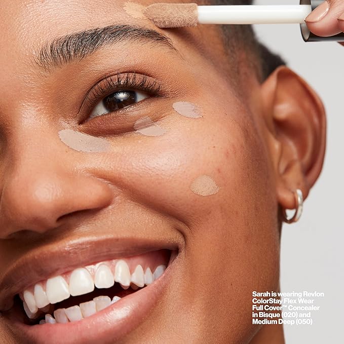 Revlon ColorStay Flex Wear, Full Cover Non-Creasing Concealer, Infused with Hyaluronic Acid & Vitamin E, Flexible Longwear, 050 Medium Deep, 0.34 Fl Oz
