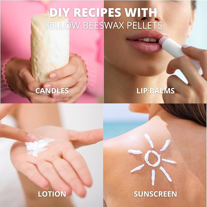 - PURE HOME-MADE COSMETICS: Bees wax is world-known for its miracle effects on the skin. Treat dry skin and leave your complexion smoother, softer, and radiant with health! Make your own Body Butters, Lotions, Deodorants, Sunscreen, Soaps, Hair products, Crayons and more!