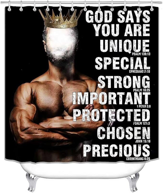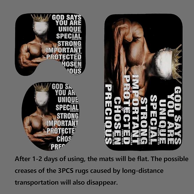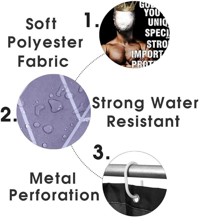 4PCS African American Shower Curtain Set, Black Shower Curtain, Black King Afro Black Man Bathroom Decor, Non-Slip Bath Mat, Positive Motivational Inspirational Gifts for Men, Man Cave Decor