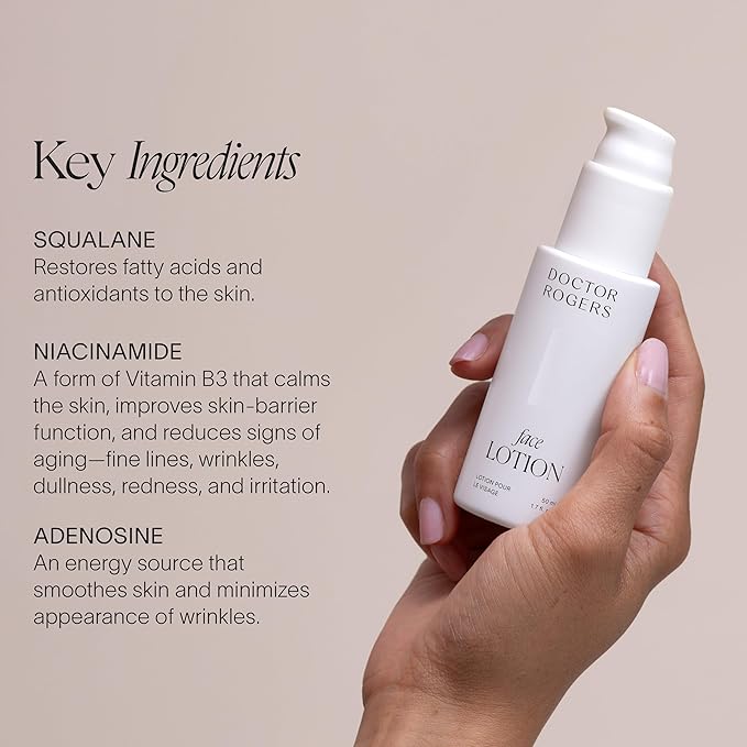 Doctor Rogers Face Lotion. Unscented Moisturizing Lotion for Sensitive Skin. Lightweight Hydration. Moisturize & Strengthen Skin, Fragrance & Paraben Free 1.7 Ounce (50ml)