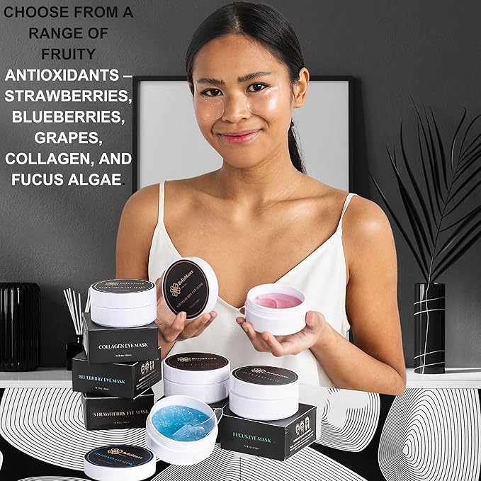 - π INSTANT RADIANCE: Witness visible improvements in just a few uses. Our cooling gel formula renews your eyes, eliminating dark circles and fatigue. Experience a soft, moisturized effect, perfect for a beauty and self-care regimen. Choose from a range of fruity flavors β strawberries, blueberries, grapes, collagen, and fucus algae. A taste of the exotic in every patch. Enhance your self-care and skincare experience with diversity.
