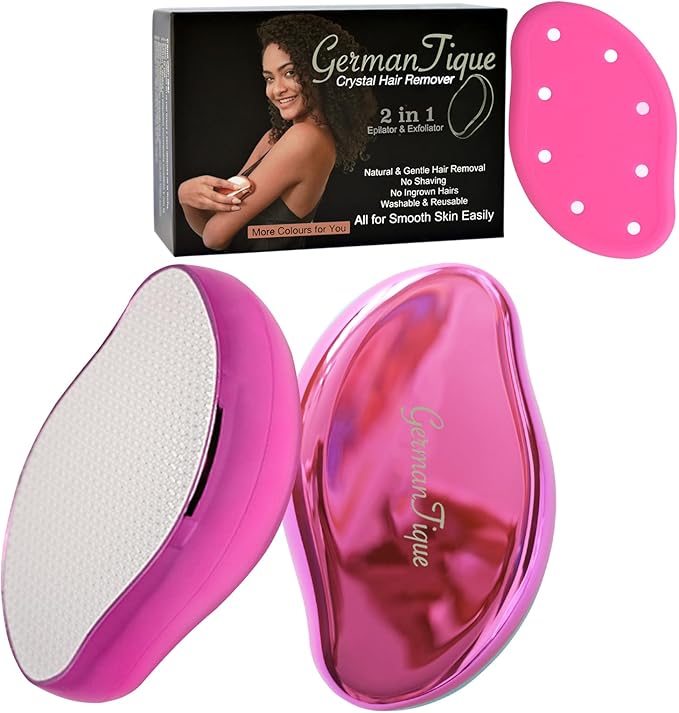- AWAY FROM IRRITATION AND SLOW HAIR REGROWTH:Germantique crystal hair removal tool is a new generation of hair removal epilator. It can remove the hair without black dots easily and exfoliate dry skin cells with gentle glide which leaves skin soft and silky smooth .The hair can be evenly grabbed and neatly removed from the hair root when rubbing along the innovative circular patterns.No irritation,no fuss. It helps slow down and thinner hair regrowth after a regular use every two weeks
