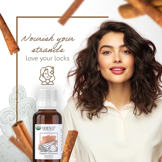 HBNO Organic Cinnamon Leaf Essential Oil - 1 oz (30ml) Travel Size - USDA Certified Organic Cinnamon Essential Oil, Perfect for Aromatherapy, Soap Making, DIY, Fragrances, Diffuser.