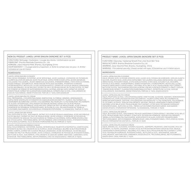 - 【Complete facial care process】: LAIKOU Sakura Skin Set beauty gift can meet everything you need for facial care: Cleanser, Serum, Eye Cream, Face Cream.