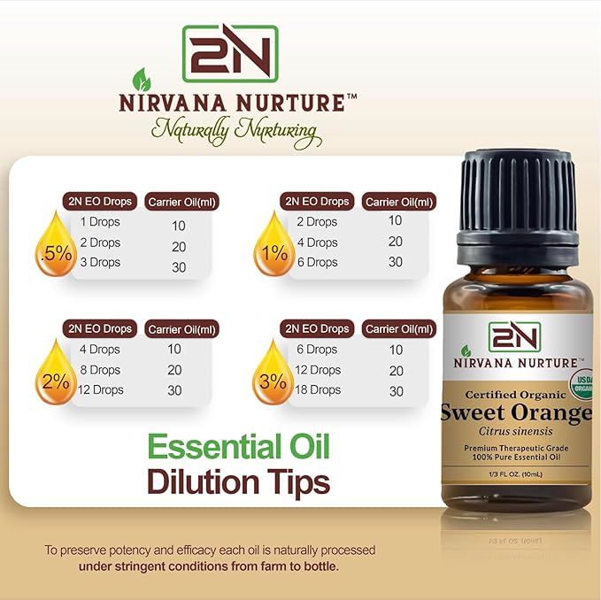 - SKIN BEAUTY: Nirvana Nurture Sweet Orange oil loaded with tons of antioxidants promotes radiance youthful skin. Always dilute 5 drops of Sweet Orange oil to your choice of carrier oil before applying it.