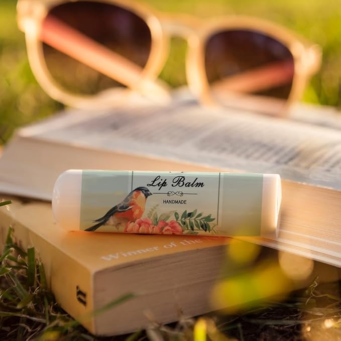 OLYCRAFT 100Pcs Self-Adhesive Lip Balm Tag Stickers 1.7x2.1 inch Waterproof Adhesive Label with Bird Patterns Rectangle Lipstick Tag Sticker for Lip Balm Container Tubes Lipstick Wrapping Decoration