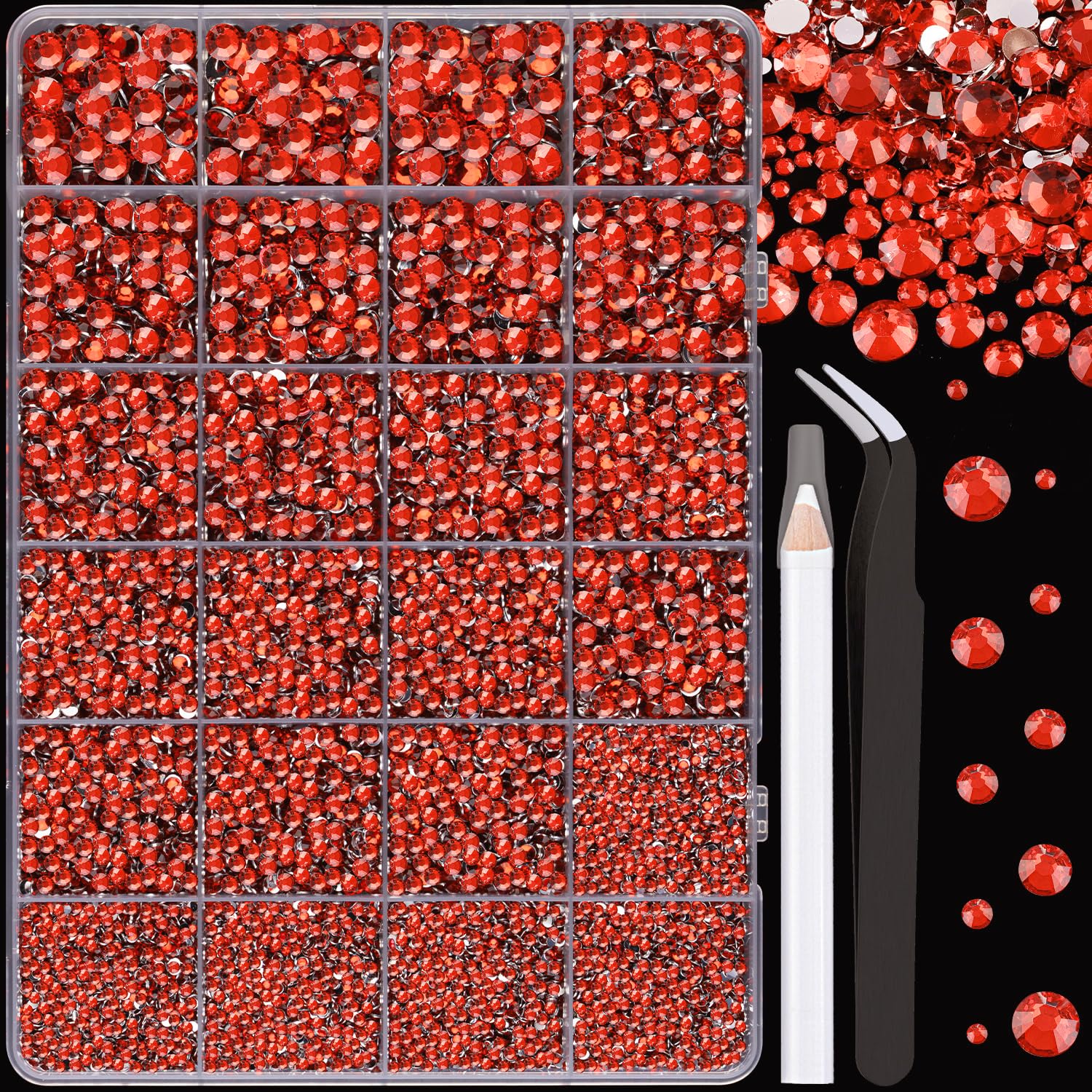 - ๐PACKAGE CONTENT -- The package includes 1 box with 24 grids, featuring a variety of sizes: 2mm x 5 grid, 3mm x 6 grid, 4mm x 5 grids, 5mm x 5 grids, and 6mm x 3 grids, approx. 25000 pcs of 2-6mm bling-out resin rhinestones (Red). 1 tweezers and 1 pickup pen are included for easily picking up of rhinestones. The large amount will support you to fulfill a number of your wonderful DIY decoration ideas.