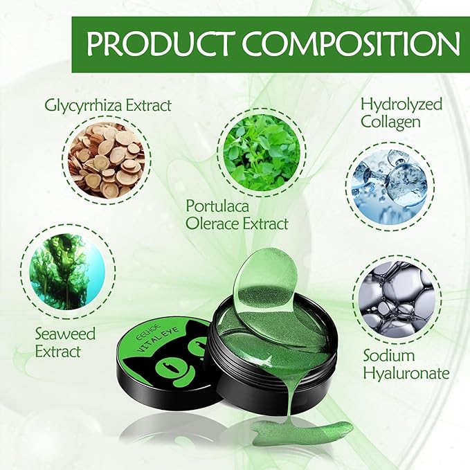 Eye Mask-Seaweed Under Eye Patches with Collagen &Sodium Hyaluronate, Pure Natural Extracts For Wrinkles, Puffy Eyes & Dark Circles, for Youthful Appearance & Reduction of Fine Lines (60 Pcs)