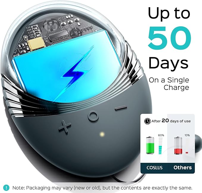 - 50 DAYS ULTRA-LONG BATTERY LIFE, USE ANYTIME ANYWHERE: The COSLUS portable silicone face scrubber uses a powerful battery, with a battery life twice that of other products on the market. With just 1.5 hours of charging, it can be used for 50 days. Its compact and lightweight design makes it perfect for use at home or on the go, and it comes with a USB cable (adapter not included) for charging. With a super long 50-day battery life, it is truly a portable solution for your convenience while traveling