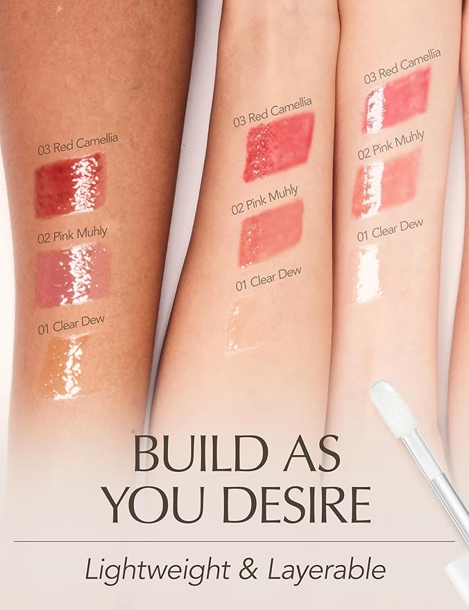 - [ CLEAR PLUMPING LIP GLOSS ] Fan of shining, shimmering lips? The natural bloom Clear Dew lip oil serum features a thick, smooth, but non-sticky texture with a dew-kissed sheen and a transparent glazed finish. Clear Dew has no noticeable scent and doesn’t cause harsh burning sensation and has a long-lasting effect!
