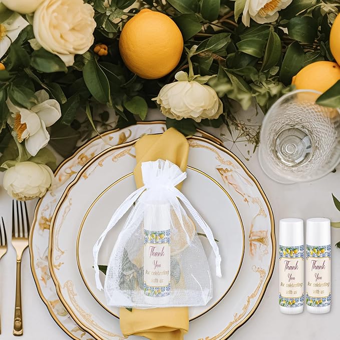 Demissle 50 Pcs Baby Shower Lip Balm Gift Set with 100 Pcs Organza Bags Baby Shower Party Favor for Guest Thank You Tag Rope Baby Shower Party Decoration Gender Reveal Souvenirs (Lemon)