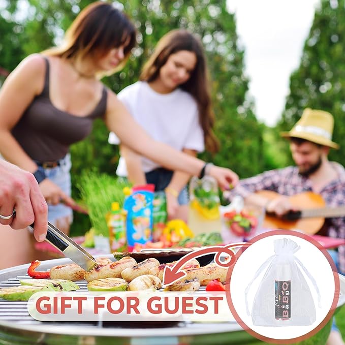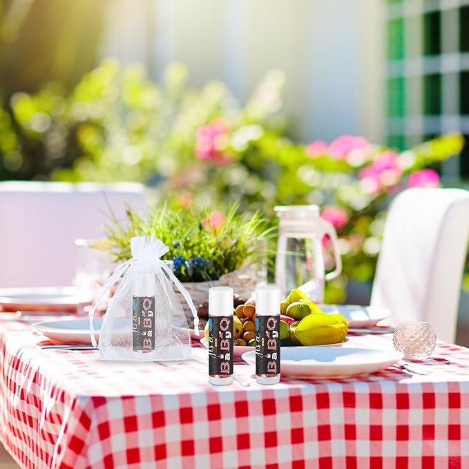 Demissle 50 Pcs Baby Shower Lip Balm Gift Set with 100 Pcs Organza Bags Baby Shower Party Favor for Guest Thank You Tag Rope Baby Shower Party Decoration Gender Reveal Souvenirs (Bbq)