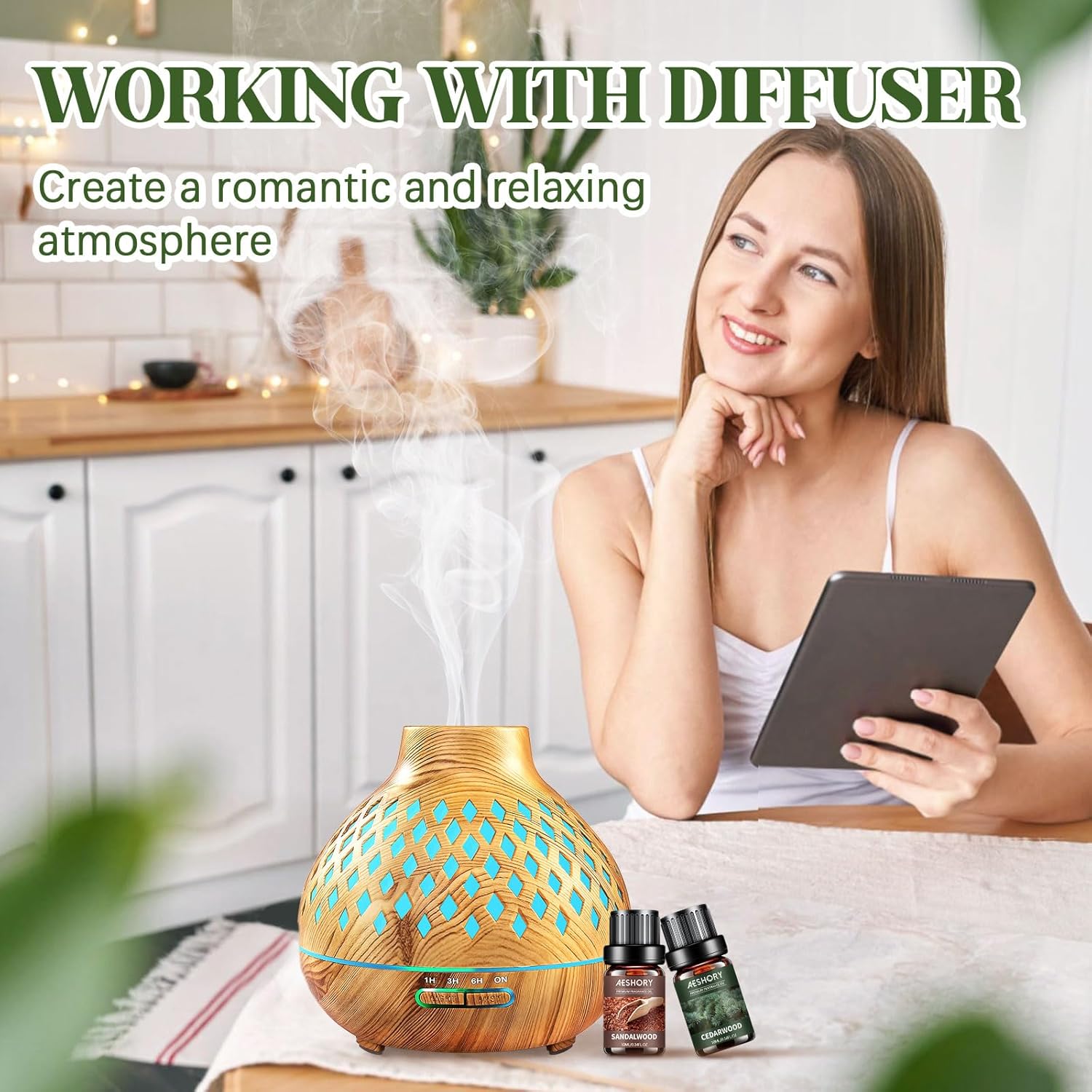 - 🌲【Multiple Uses】These essential oils can be used for aromatherapy, diffuser, massage, skin & hair care. Simply add a few drops to any diffuser and fill your entire room with that aroma, suitable for home care (large room, bedroom, living room, bathroom), office, outdoors, campground, yoga room and spa for a whole day relaxation.