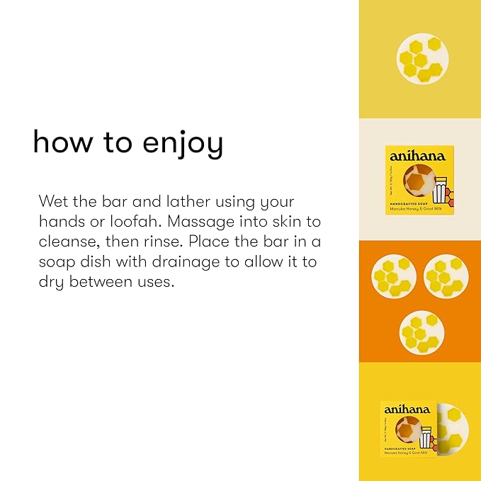 ANIHANA Handcrafted Soap 3 Pack with Coconut Oil, Gentle Cleansing Paraben Free Cruelty Free Refreshing Manuka Honey & Goat Milk Scent 4.23 oz each